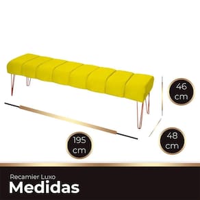 Transforme seu espaço em um oásis de elegância com a Recamier Luxo Casal King Size . Esta peça estilosa e moderna é a definição de sofisticação, com detalhes em formatos verticais no assento que a tornam única. Seus pés de alumínio na cor cobre proporcionam uma decoração inigualável, elevando o ambiente a um nível de requinte incomparável. Leve para casa essa beleza e adicione um toque de luxo ao seu lar hoje mesmo.