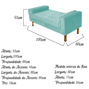 Com uma estrutura e beleza única, o Recamier Félix se adapta em qualquer ambiente, tornando-o ainda mais elegante e harmonioso. Um Recamier luxuoso de alta qualidade, dará um toque especial em seu ambiente. Não perca essa oportunidade de levar mais charme e requinte ao seu cômodo, adquira já o seu! Especificações Técnicas do Recamier Félix: - Altura: 53 cm; - Largura: 100 cm; - Profundidade: 60 cm; - Altura do Assento: 42 cm; - Largura do Assento: 80 cm; - Profundidade do Assento: 60 cm; - Altura dos Pés: 18 cm; - Peso: 35 kg. - Peso Suportado: 220 kg. Medida Interna do Baú: - Altura: 11 cm; - Largura: 80 cm; - Profundidade: 55 cm; Diferenciais do Recamier Félix: - Material da Estrutura: fabricado com Madeira Pinus e Eucalipto Reflorestada, e alguns detalhes em MDF; - Tipo de Assento: estofado e com espuma de densidade D-26; - Tipo de Encosto: estofado e com espuma de densidade D-18; - Detalhes do Tecido: possui detalhes em botonê, onde os botões são revestidos no mesmo tecido do produto e finalizados com excelente acabamento; - Detalhes dos Pés: acompanha kit de pés (4 pés) de madeira, no estilo Luís XV, com alta resistência; - Volumes: nessa compra você receberá um único produto. Recomendações de limpeza: -Limpar com flanela limpa e seca. Não molhar o móvel e não expor em lugar úmido ou próximo de fontes de calor. Não usar produtos abrasivos.