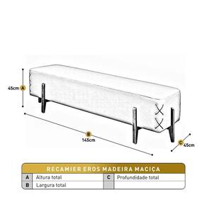 Informações Complementares: O Recamier Eros Madeira Maciça se destaca pelo seu design elegante com detalhes em costura cruzada nas laterais e pés robustos de madeira maciça, que garantem durabilidade e um toque sofisticado ao ambiente. Além disso, sua estrutura alongada e acolchoada