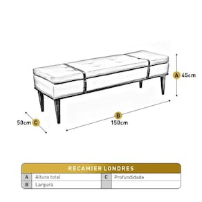 Informações Complementares: O Recamier Londres Luxo destaca-se pelo seu design sofisticado com detalhes em cintos de couro que adicionam um toque de elegância única e pela estrutura em madeira maciça que garante durabilidade e robustez. Além disso, o estofado de alta qualidade propo