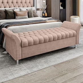 Recamier Puff Estofado Casal 140 Cm ágata Veludo Rose - Rosa
