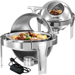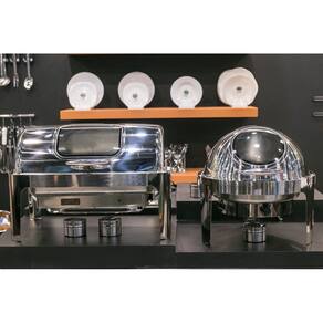 Sua tampa e visor de vidro articulada permitem fácil acesso e uma apresentação atraente dos alimentos, facilitando a visualização para os clientes. Além disso, o rechaud vem com um suporte especialmente projetado para acomodar a resistência da marca Chef Line, caso você prefira utilizar a função elétrica, proporcionando ainda mais versatilidade.