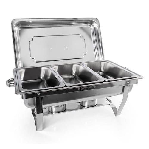 Requinte, eficiência e praticidade para refeitórios, buffets e eventos! Garanta o seu Réchaud Aço Inox Retangular 3 Cubas Gourmet Mix e mantenha os alimentos aquecidos por mais tempo, mesmo após o preparo. Produzido em aço inoxidável de qualidade, proporciona durabilidade, resistência e beleza, além de três cubas para alimentos, uma cuba para água, um suporte para cuba, dois fogareiros para álcool em gel e uma tampa de inox com pegador que facilita o manuseio e alças que facilitam o transporte. Conheça a linha de réchauds Gourmet Mix e garanta o seu agora mesmo!*COMPÁTIVEL COM AS SEGUINTES CUBAS GNS: 1 CUBA 1/1, 2 CUBAS ½ OU 3 CUBAS 1/3. VantagensIdeal para servir alimentos quentes ou frios, o Réchaud Aço Inox Retangular 3 Cubas Gourmet Mix é um item indispensável para quem não abre mão de excelência na hora de servir alimentos. Possui caneletas antigotejamento e sistema de aquecimento eficiente através dos fogareiros que não permite a perda de temperatura. Alimentos quentinhos e mais saborosos por muito mais tempo!