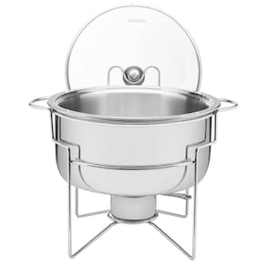 - É acompanhado por uma tampa de vidro que permite a visualização dos alimentos, suporte para descanso da tampa durante seu o uso e um fogareiro, que auxilia na conservação da temperatura dos alimentos.