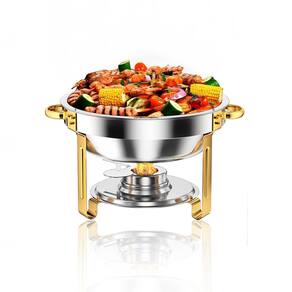 Recomendações de Uso Para um aquecimento eficaz, utilize água quente no recipiente externo e insira o alimento no interno. Acione o fogareiro com álcool gel industrial. Para manter os alimentos frios, use gelo no recipiente externo e mantenha o fogareiro desligado. Por Que Escolher o Rechaud RM? Seja para bufês, casamentos ou eventos corporativos, este rechaud combina praticidade com elegância, garantindo que seus eventos sejam memoráveis pela qualidade da comida e pela sofisticação da apresentação. Transforme seus eventos em experiências inesquecíveis com o Rechaud Dourado RM. Adquira já e leve um toque de classe ao seu buffet!*imagens meramente ilustrativas Marca: RM Decor