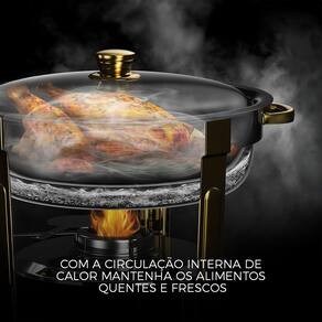 Funcionalidade e Elegância Este rechaud não é apenas visualmente atraente; ele também mantém suas refeições na temperatura ideal, preservando a qualidade e o sabor. O conjunto inclui um fogareiro de aço inox eficiente, garantindo que seus pratos permaneçam aquecidos durante todo o evento. Informações Gerais