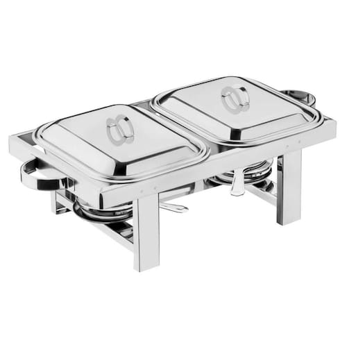 Rechaud Perfectha Duplo com Tampa 3L Retangular 2 Cubas Aço Inox Restaurante Hotel.