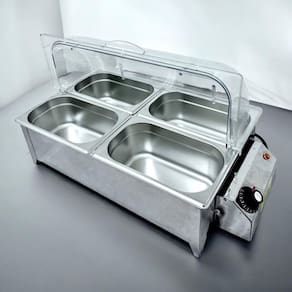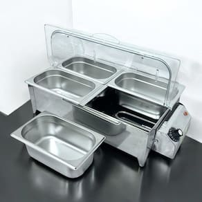 Este produto é ideal para gestores de buffets, donos de restaurantes e organizadores de eventos que desejam oferecer uma apresentação impecável dos alimentos e garantir a temperatura ideal durante o serviço. O cliente ideal busca por equipamentos que combinem eficiência, durabilidade e facilidade de manuseio.