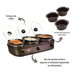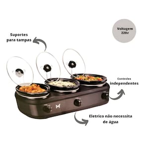 Rechaud Elétrico Triplo Buffet Slow Cooker Inox 220VEleve o nível dos seus eventos e refeições em casa com o Rechaud Elétrico Triplo Buffet Slow Cooker! Pensado para quem busca praticidade, elegância e desempenho, este rechaud é a solução ideal para servir alimentos sempre quentes, no ponto certo e com um visual impecável.Equipado com três cubas de cerâmica de alta resistência, este modelo se destaca pela qualidade premium: as cubas são duráveis, fáceis de limpar e, além disso, podem ir diretamente ao forno, proporcionando ainda mais versatilidade para o preparo e finalização dos pratos. A estrutura em inox oferece não só um design moderno e refinado, mas também garante maior durabilidade e facilidade de manutenção.Principais diferenciais:Cubas de cerâmica resistente: suportam altas temperaturas e vão ao forno, otimizando seu tempo e praticidade na cozinha.Sistema elétrico eficiente: mantém os alimentos aquecidos de maneira uniforme, sem ressecar.Design elegante em aço inox: combina com qualquer decoração de buffet, festas, eventos ou jantares especiais.Capacidade tripla: perfeito para servir diferentes pratos simultaneamente, com controle de aquecimento.Ideal para eventos, buffets, recepções ou mesmo para quem adora receber bem em casa, o Rechaud Elétrico Triplo Buffet Slow Cooker une sofisticação, praticidade e qualidade incomparável.Garanta já o seu e surpreenda seus convidados com estilo e eficiência! Marca: Member's Mark