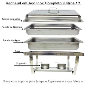 Rechaud Inox 9 Litros Panelas Banho Maria 1 Cuba Buffet 1/1