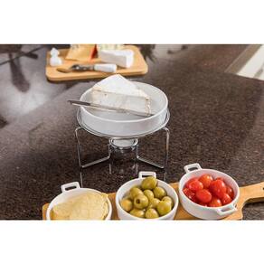 O Rechaud para queijo Brie de aço inox e cerâmica é compacto e fácil de limpar e ainda espalha o calor sobre a peça de cerâmica uniformemente evitando que o queijo queime.