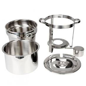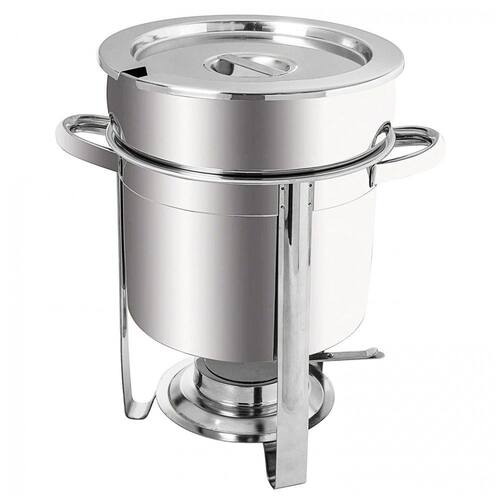 O conjunto vem completo com a estrutura soldada, panela de água, suporte de combustível, tampa e chafer de marmite. É perfeito para buffets, áreas de café da manhã de hotéis, brunches, eventos de catering, festas, banquetes de casamento e ambientes de autoatendimento. É geralmente para sopas, molhos, cereais quentes e outras ocasiões.