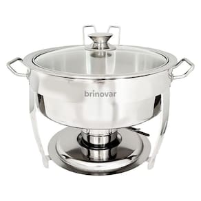 O Rechaud Redondo 5 Litros Brinovar tem a estrutura e o fogareiro em Aço Inox: altamente durável, resistente e fácil de limpar. Possui a tampa em vidro temperado, com saída de vapor. Vem com um prático apoio para tampa. A substituição da cuba é muito simples, podendo ser realizada durante o uso do produto, sem prejudicar o serviço