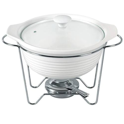 Rechaud Redondo em Cerâmica com Queimador 2,3L Elegância Funcional para Servir com Estilo O Rechaud Redondoé a união perfeita entre design sofisticado e praticidade na hora de servir. Com capacidade generosa de 2,3 litros, é ideal para manter pratos quentes como risotos, massas, sopas ou carnes sempre na temperatura ideal durante suas refeições ou eventos. A travessa em cerâmica branca de alta resistência proporciona excelente conservação térmica e um visual clean que valoriza qualquer composição de mesa. A estrutura metálica com acabamento cromado confere estabilidade e durabilidade, enquanto o queimador integrado garante o aquecimento contínuo com segurança. A tampa em vidro temperado com puxador facilita a visualização do alimento sem necessidade de abertura, ajudando a preservar o calor e a umidade dos pratos servidos. Especificações Técnicas: Capacidade: 2,3 litros Dimensões: 33 cm largura x 25,5 cm profundidade x 25 cm altura Material da travessa: Cerâmica branca Material da tampa: Vidro temperado com pegador central Suporte: Aço cromado Queimador: Reservatório com regulagem de chama Peso aproximado: 2,7 kg Diferenciais: Formato redondo que facilita o serviço e o manuseio Design elegante e versátil para uso doméstico ou Ideal para buffets, jantares ou ocasiões especiais Componentes removíveis para facilitar a limpeza e o armazenamento Marca Full Fit - referência em qualidade e acabamento Marca: Não Informado