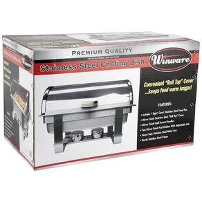 Inclui uma panela de comida de tamanho completo, panela de água sem gotejamento de 5 centímetros de profundidade, tampa de cúpula e dois suportes de combustível tampa roll top de aço inoxidável Alças e pernas com detalhes dourados