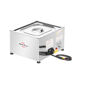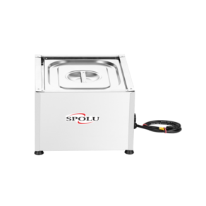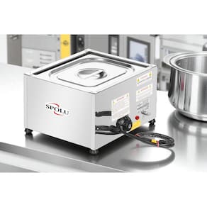 A função do RECHAUD 1 CUBA SPOLU é manter os alimentos servidos em suas cubas quentes enquanto em exposição. Possui cubas fabricadas em aço inox 201, tanque, tampas e moldura externa em aço inox 430. Sua resistência blindada é confeccionada em aço inox e controlada por um termostato com escala de 30ºC a 120ºC. Possui uma lâmpada piloto em seu painel indicando a função liga/desliga do termostato. Produtos SPOLU - CONCEITO DE QUALIDADE.
