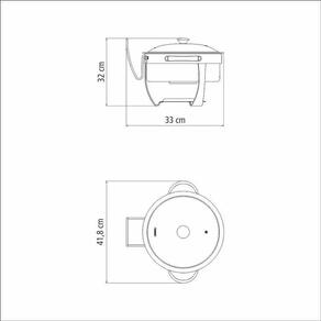 Modo de Uso: Medidas de : LEIA AS INSTRUÇÕES ABAIXO COM ATENÇÃO! RECOMENDAMOS GUARDAR ESTE MANUAL PARA FUTURAS CONSULTAS. Para eliminar o risco de asfixia em crianças pequenas, remova e descarte com todas as embalagens plásticas do produto. Não coloque o aparelho perto das bordas do balcão ou da mesa durante a sua utilização. Assegure-se de que a superfície esteja nivelada e limpa. Posicione o aparelho a uma distância mínima de 20 cm de paredes, cortinas, tecidos e outros materiais sensíveis ao calor. Antes do uso, assegure-se sempre de que o aparelho esteja montado corretamente. Siga as instruções fornecidas neste manual. Não coloque papelão, plástico, papel ou outros materiais inflamáveis perto do aparelho. Antes de mover, desmontar, limpar e guardar o aparelho, ou quando ele não estiver em uso ou for deixado sem supervisão, assegure-se sempre de que o rechaud esteja frio. O aparelho não deve ser limpo com jato de água. Supervisione as crianças para garantir que elas não brinquem com o aparelho. Instruções de uso rechaud com fogareiro: Confira, passo a passo, como aquecer ou esfriar sua comida: Adicione água quente (para melhorar a eficiência do aquecimento) no recipiente externo, até o nível indicado (ver marcação). Coloque o alimento no recipiente interno. Retire o fogareiro da base do rechaud e adicione álcool gel industrial. Leve o fogareiro até a base do rechaud. Acenda o fogareiro. Para apagar a chama, utilize a tampa do fogareiro. ATENÇÃO: Para conservar o alimento resfriado, mantenha o fogareiro apagado e coloque gelo no recipiente externo. Utilização do queimador: Utilize corretamente o queimador, observando as recomendações abaixo: Abra o queimador girando a tampa no sentido anti-horário e abasteça-o com o álcool gel. Não ultrapasse a altura da rosca. Coloque somente álcool gel industrial no queimador. Não utilize álcool líquido. Abra os orifícios de ventilação e acenda o fogo pelo orifício central. Para regular a chama, acione o obturador dos orifícios de ventilação. Abrindo, você obterá chama alta, e fechando terá chama baixa. Exceto para o item 61040/100, em que basta utilizar a tampa para apagar o fogo. A quantidade de álcool recomendada garante a manutenção da chama por aproximadamente 2 horas. Depois de utilizar o queimador, remova os resíduos de álcool gel do reservatório. ATENÇÃO: Evite acidentes! Ao reabastecer o queimador, certifique-se de que a chama esteja completamente extinta. Este aparelho é destinado ao uso doméstico e comercial (cozinhas de restaurantes, cantinas, hospitais, padarias, etc.), mas não para a produção contínua em massa de alimentos.