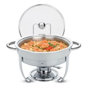Rechaud Tramontina Redondo Em Inox Banho Maria Com Suporte Para Tampa E Fogareiro 4,3 L