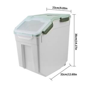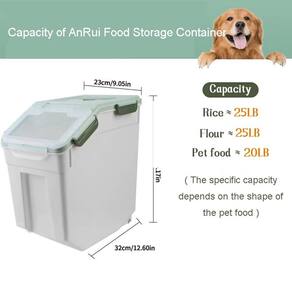 Este recipiente de armazenamento de ração para animais de estimação é feito de PP de grau alimentício, proporcionando um ambiente de armazenamento saudável. Os grandes recipientes de farinha de plástico são perfeitos para armazenar sua farinha, açúcar, arroz, grãos, nozes, feijão, lanches, passado. café, chá, ração para animais de estimação ou qualquer coisa que você queira armazenar. Recipientes herméticos, à prova de vazamentos e duráveis. Uma vedação de silicone aprimorada mantém os alimentos frescos por mais tempo. O design da capa transparente torna toda a caixa de armazenamento mais bonita e elegante. Com design de janela visível, você pode ver o interior claramente num relance, para não precisar abrir a caixa. Especificações: Material: PP de grau alimentício, silicone Cor: verde Capacidade: pode conter cerca de 13 kg de farinha e cerca de 9 kg de comida de cachorro por recipiente. (a capacidade específica depende da forma da ração para animais de estimação). Dimensões (aprox. ): 32 x 23 x 36 cm (C x L x A) Incluído na embalagem: 1 recipiente de armazenamento de ração para cães. 1 colher de comida de plástico (entrega de ). 1 copo medidor. - ?Recipiente de armazenamento multifuncional?O recipiente de armazenamento de farinha é uma ótima maneira de armazenar qualquer tipo de alimento e mantê-lo seguro e seco pelo tempo que você precisar. O recipiente hermético para alimentos é ótimo para armazenar farinha, grãos, cereais, açúcar, arroz, nozes, feijão, lanche, café, chá, pão, milho, macarrão, ervas, ração para animais de estimação, soja, produtos secos, etc. - ?Material de qualidade alimentar e durável? O recipiente de armazenamento de arroz é feito de plástico PP livre de BPA e silicone ecológico, não tóxico e seguro. Tamanho (aprox. ): 32 x 23 x 36 cm (C x L x A). Capacidade: pode suportar cerca de 11 kg de farinha/arroz e cerca de 9 kg de ração para animais de estimação por recipiente. Dica: a capacidade varia dependendo do tamanho do que você está colocando, a capacidade do produto é apenas para referência. - Recipiente hermético para alimentos: capa hermética de silicone selada com tampa flip e fechos de trava, mantendo seus alimentos limpos e secos. Garante que seus ingredientes permaneçam sempre frescos. - ?Fácil de usar?A frente do recipiente de armazenamento de comida de cachorro de plástico tem uma ranhura e uma grande abertura inclinada, o que o torna muito fácil de retirar e encher. Com tampas transparentes, resume-se a quantidade restante do barril. Há 2 rodas pequenas na parte de trás, você só precisa levantar a frente para puxá-la facilmente. - ?Fácil de limpar?As tampas do recipiente de armazenamento de ração para animais de estimação são removíveis, fáceis de limpar. Este recipiente para comida de cachorro pode ser colocado na prateleira, despensa, bancada, mesa ou armário, mantenha limpo e arrumado.