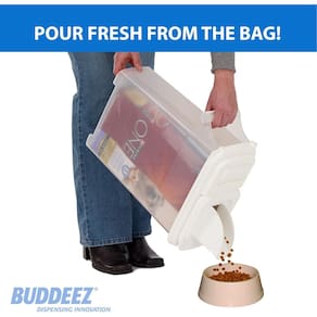Recipiente de armazenamento de alimentos para animais de estimação Buddeez, capacidade de 7,25 kg, tampa branca