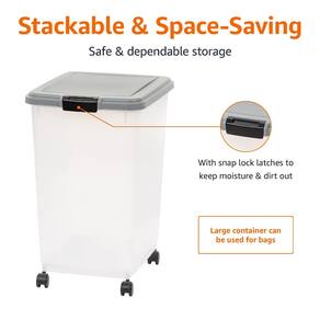 Recipiente hermético de armazenamento de alimentos para cães Amazon Basics com concha e rodas, 69 QT, cinza