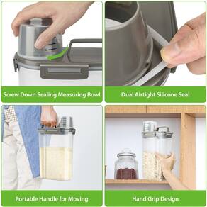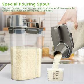 Recipiente de armazenamento de alimentos premium perfeito para sua despensa de cozinha Nosso maravilhoso recipiente de armazenamento de grãos frescos contém itens básicos de cozinha como farinha, açúcar, arroz, nozes, feijão, lanche, alimentos, cereais, café, chá, lindamente no balcão, despensa ou geladeira. Design fino, altura perfeita para organização de despensa ou armários de cozinha de tamanhos diferentes, fino ocupa menos espaço na geladeira ou despensa. Recipiente portátil inteligente de armazenamento de alimentos Este pequeno recipiente transparente e visível pode conter cerca de 2,3 kg de arroz. A alça portátil é conveniente para levar para fora, caminhar e viajar. Os outros têm apenas 2 fivelas de bloqueio. Nosso recipiente de atualização tem 4 fivelas de bloqueio. Com tampas herméticas de design especial, este recipiente de plástico sempre manterá sua comida seca e fresca. A parte superior tem um bico portátil para você tirar alimentos facilmente. Não é necessário abrir a tampa. Você também pode usar o copo de medição para medir. Obtenha o tamanho exato do alimento que você deseja. Especificações: Materiais do recipiente de alimentos de arroz: plástico de grau alimentício Cor do recipiente de alimentos de arroz: transparente Capacidade do recipiente de alimentos de arroz: 3 l/1,6 kg Peso do recipiente de alimentos de arroz: 0,3 kg/0,6 lb Tamanho do recipiente de alimentos de arroz: 17 cm C x 11 cm L x 31 cm A Conteúdo da embalagem: 1 recipiente de armazenamento de arroz Viretec 1 manual de instruções (idioma português não garantido). - Recipiente inteligente de armazenamento de cozinha: deixe sua despensa perfeitamente organizada com este recipiente inteligente. Adequado para feijão, farinha, açúcar, café, arroz, nozes, lanches, alimentos para animais de estimação e muito mais (Observação: a capacidade de armazenamento do recipiente varia de acordo com os alimentos. Guarde apenas cerca de 1,3 kg de ração ou farinha para animais de estimação.) - Dispensador de arroz com bico de derramamento: adota uma alça ergonômica, vem com um copo medidor. O corpo do barril tem uma escala padrão para que você possa colocar as coisas com rapidez e precisão sempre. Fino, compacto e economiza espaço - Livre de BPA e plástico de grau alimentício: o recipiente Viretec é feito de material espesso durável e bastante resistente de alta qualidade, livre de BPA. Pode durar mais do que outros produtos de plástico comuns. Resistente ao calor e lavável na lava-louças - Resistente ao ar e economizar espaço: o sistema de armazenamento hermético sempre protegerá seus alimentos da umidade. Quatro fivelas fortes selam o recipiente firmemente, mantêm sua comida fresca e seca. Seu tamanho e altura moderados, fazendo uso racional do espaço da sua cozinha - Visibilidade e conveniência claras: os recipientes transparentes facilitam a visualização do que está dentro, você pode obter o que deseja sem abrir. Alça portátil, fácil de mover e sair - Não se preocupe em comprar: é um recipiente novo, talvez seja um pouco difícil de fechar pela primeira vez. Depois de usar algumas vezes mais tarde. Você achará fácil de fechar. Coloque toda a tampa no recipiente e empurre as fivelas para baixo. Se você tiver alguma dúvida durante o processo de compra, . Forneceremos uma solução adequada dentro de 24 horas. Sua satisfação é nossa primeira prioridade
