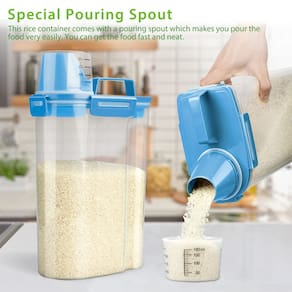 - Recipiente inteligente de armazenamento de cozinha: deixe sua despensa perfeitamente organizada com este recipiente inteligente. Adequado para feijão, farinha, açúcar, café, arroz, nozes, lanches, alimentos para animais de estimação e muito mais (Observação: a capacidade de armazenamento do recipiente varia de acordo com os alimentos. Guarde apenas cerca de 1,3 kg de ração ou farinha para animais de estimação.)