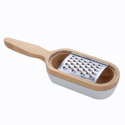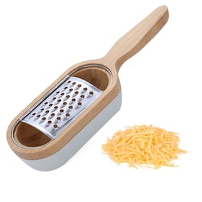 O ralador de queijo feito em bambu e aço inoxidável é uma ferramenta essencial para os amantes do queijo que buscam comodidade e praticidade na cozinha. Com medidas de 27x7x5 cm, este ralador oferece eficiência em um design compacto. Fabricado com materiais duráveis, como bambu e aço inoxidável, garante resistência e qualidade em seu uso diário. A incorporação de um coletor de queijo é um recurso funcional que melhora a experiência para evitar desordem na mesa ou nos móveis. Além disso, su color café agrega un toque l y cálido a la cocina, convirtiéndolo en un accesorio tanto práctico quanto esteticamente agradable.Material: Bambu y acero inoxidable Cor: CaféMedidas:5 cm x 7 cm x 27 cm