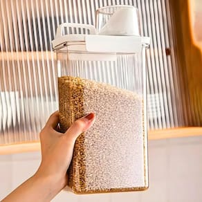 - Capacidade e Versatilidade: Este recipiente é perfeito para armazenar uma ampla variedade de alimentos, incluindo grãos, massas, produtos de panificação, farinha, açúcar, nozes e outros produtos secos. Também é adequado para líquidos, como desinfetantes e sabões, tornando-o um item multifuncional para sua casa.