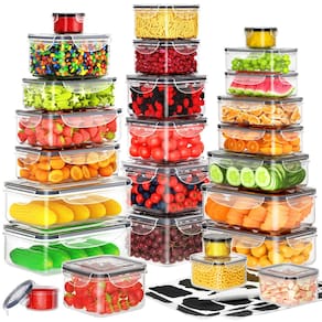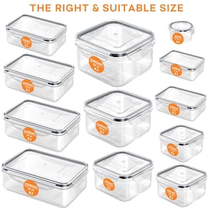 Recipiente de preparação de refeições, organizadores e armazenamento de cozinha, recipientes de plástico com tampas para alimentos, uma solução de armazenamento de alimentos sem bagunça e sem derramamentos. O mecanismo de bloqueio de tampa de 4 lados oferece uma vedação hermética e segura para manter o frescor. Perfeito para levar suas refeições em qualquer lugar. As tampas seguras evitam derramamentos e os recipientes são fáceis de transportar. Eles são ótimos para o trabalho, escola, viagens e muito mais. Feito de materiais de alta qualidade e resiste a manchas e odores, tornando-os ideais para armazenar todos os tipos de alimentos. Além disso, são fáceis de usar, laváveis na lava-louças e fáceis de limpar. Recipientes de armazenamento de alimentos com tampas, recipientes para almoço de alimentos, recipientes de armazenamento de alimentos, recipientes de armazenamento de cozinha, recipientes de alimentos com tampas herméticas, recipientes de armazenamento de alimentos empilháveis, armazenamento de alimentos, apenas o dia de hoje - Perfeito para dimensionamento de porções: projetado com você em mente. Você receberá 26 organizações de cozinha e despensa sem BPA que têm uma variedade de tamanhos pequenos a grandes com 26 tampas, incluindo 12 recipientes retangulares: (2 x 2,5 g, 2 x 1,417 g, 2 x 963 g, 2 x 482 g, 2 x 227 g, 2 x 113,4 cm. g), 10 recipientes quadrados (2 x 1,927 g, 2 x 1,134 g, 2 x 652 g, 2 x 368 g, 2 x 170 g) e 4 caixas redondas de molho (4 x 76,5 g) - Versátil e de longa duração: os recipientes de preparação de refeições são seguros para geladeira, freezer, micro-ondas (apenas base, NÃO tampa, menos de 5 minutos, abaixo de 700 Watt,*para pelo menos metade do recipiente cheio). Recomendamos que você coloque a tampa na parte superior da máquina de lavar louça para limpá-la em vez de outros lugares - Portabilidade perfeita: leve suas refeições em movimento com confiança. Estes recipientes de armazenamento de cozinha são leves, compactos e à prova de vazamentos, o que os torna o companheiro de viagem perfeito para almoços, piqueniques e lanches em movimento - Atualizado: 100% à prova de vazamento e hermético: os recipientes de armazenamento vêm com anéis de silicone removíveis e 4 sistemas de travamento de dobradiça que são facilmente fechados adicionando pouca pressão do que a versão antiga. O uso de recipientes de alimentos pode manter seus alimentos frescos e arrumados, evitando derramamentos de alimentos e vazamento de cheiro de comida - Organização empilhável da cozinha: os recipientes de armazenamento com tampas têm uma pilha sequencial e design organizável, encaixando esses recipientes uns nos outros verticalmente. Estes recipientes de armazenamento empilháveis se encaixam perfeitamente, facilitando a organização de sua despensa ou geladeira enquanto otimiza o espaço - O que você receberá: além dos mencionados acima (26 conjuntos de diferentes recipientes de alimentos, etiquetas e canetas), você receberá um bom serviço pós-venda. Se você tiver alguma dúvida ou insatisfação com nossos recipientes herméticos de armazenamento de alimentos, imediatamente e lhe daremos uma resposta satisfatória