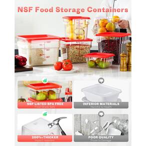- ?Conjunto de recipientes de armazenamento de alimentos?: SVKLHY embalagem transparente inclui recipientes quadrados de armazenamento de alimentos de 4 x 2 litros e 4 litros com tampas vermelhas, 8 x etiquetas livres, 1 marcador e 2 copos medidores. Acessórios adicionais atendem melhor a uma variedade de necessidades e cenários de uso, melhorando a experiência geral do usuário.