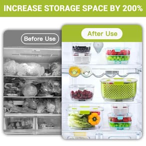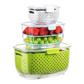 Recipientes de frutas de presente de Natal para geladeira, recipientes de economia de frutas, recipiente de armazenamento de frutas para geladeira, recipientes de morango, recipientes de produtos para geladeira, recipientes de vegetais para geladeira - Mantenha vegetais e frutas frescas: o recipiente de armazenamento/economia de vegetais e frutas com tampas tem um sistema de ventilação que pode regular o fluxo de ar, para dentro e para fora, controlar a umidade dentro do armazenamento de vegetais, ajudar a evitar a deterioração, manter a vida útil de frutas e legumes por mais tempo na geladeira ou quando não estiver refrigerado. - DESIGN DE ARMAZENAMENTO CLASSIFICADO - Mantenha a geladeira organizada: este recipiente de salada vem com divisórias dobráveis ajustáveis para armazenamento classificado para evitar que a comida se esprema, apodreça ou encharque. Existem três recipientes com capacidade diferente que podem ser utilizados para armazenar muitos tipos de frutas ou vegetais, como alface, repolho, morango, mirtilo e diferentes tipos de carne e peixe. Reduza o armazenamento bagunçado da geladeira, economize mais espaço para a geladeira. - Design multifuncional: a parte inferior do recipiente tem uma pequena abertura que pode ser aberta para drenar a água e também pode ser usada como peneira para lavar produtos ou coar alimentos como batatas. A bandeja de filtro na parte inferior é usada para elevar os alimentos da umidade, portanto, pode ser usada como armazenamento após a limpeza sem trocar os recipientes. Filtrar a água na superfície de vegetais e frutas para reduzir a deterioração dos alimentos. - Material de grau alimentício livre de BPA: Recipiente de armazenamento de legumes e frutas LUXEAR feito de alta qualidade, 100% de segurança alimentar, ecológico e reciclável, feito de material que pode efetivamente resistir a manchas e odores e 100% livre de BPA. - Presente ideal de férias: também pode ser utilizado para armazenar alimentos na geladeira sem medo de estragar, e também como tigelas de servir para eventos como jantar de Ação de Graças, missa de Cristo ou eventos como uma festa de piquenique saudável. É um ótimo presente ideal para seus amigos e familiares.