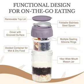 Os frascos são cristalinos para que a comida dentro possa revelar sua aparência, combinados com diferentes cores de tampas, talvez eles o motivem a fazer bricolage com uma variedade de estilos e combinações de alimentos. É perfeito para fazer aveia durante a noite, como misturar sementes de chia, iogurte, leite e frutas, ou usá-los como copos ou qualquer outra coisa para a qual você usaria frascos de vidro. - Estrutura exclusiva: para tornar o conjunto de frascos de aveia noturnos mais portáteis e compactos, a Soligt adota o design que penteia o espaço da colher dobrável e da tampa do frasco de pedreiro, basta pegar e colocar de volta a colher na tampa a cada uso. - Separação de alimentos secos e úmidos: apresenta o recipiente transparente extra pequeno dividido por dois compartimentos, para que possamos preparar frutas e nozes em cubos, misturá-las com aveia durante a noite quando comermos, sem antecedência. Faça com que os copos de aveia noturnos tenham um sabor melhor e mais fresco! - Reutilizável e confiável: todas as partes deste pequeno conjunto de recipientes de preparação de refeições são feitas de material seguro e durável, há frasco de vidro de boca larga, tampa de frasco de plástico sem BPA com uma parte superior removível (anel de silicone embutido à prova de vazamentos), colher dobrável de aço inoxidável 304, recipiente de alimentos dividido sem BPA. - Uso diário conveniente: a tampa superior deste pote de preparação de refeições é empilhável com o fundo do frasco de vidro de boca larga, fácil de armazenar na geladeira e economizar espaço. Perfeito para quem gosta de preparar mais de 1 xícara de refeição, prático para levar para o trabalho/escola/sala de ioga e academia e apenas desfrutar em casa. - Adequado para várias refeições de preparação: não apenas para tipos de aveia durante a noite, também um conjunto completo de recipientes para iogurte, parfait, salada simples e refeição de lanche, como batatas fritas e molho. Presente ideal para sua família e amigos, todo mundo adora uma dieta saudável!