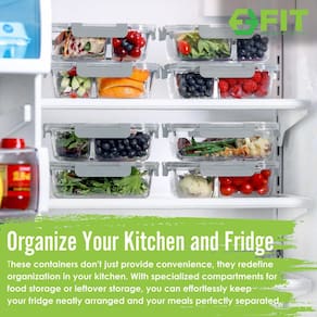 Simplifique sua rotina de preparação de refeições com os recipientes de vidro FIT Strong & Healthy para preparação de refeições com tampas. Feitos para simplificar seu estilo de vida, esses recipientes de armazenamento de vidro versáteis com tampas redefinem a maneira como você aborda a preparação e o planejamento das refeições. Projetados para praticidade e estilo, esses recipientes de vidro para preparação de refeições são perfeitos para cozinhar refeições, dividir alimentos e manter uma abordagem estruturada para nutrição durante sua semana agitada. Feitos de vidro borossilicato de alta resistência, esses recipientes de vidro com tampas para alimentos não são apenas duráveis, mas também seus companheiros de cozinha por muitos anos. As inovadoras tampas de encaixe garantem um desempenho à prova de vazamentos, mantendo seus alimentos intactos e evitando derramamentos indesejados de fora do recipiente. Se você está planejando refeições equilibradas, gerenciando sua dieta ou buscando controle de porções, esses recipientes de vidro para alimentos com tampas fornecem a solução ideal. Podem ser colocados no micro-ondas, no forno e na máquina de lavar louça, eles fazem a transição perfeita do seu freezer para o micro-ondas, oferecendo a você conveniência na hora do almoço como nunca antes. Estes recipientes oferecem mais do que apenas conveniência, eles redefinem a organização em sua cozinha. Com compartimentos especializados para armazenamento de alimentos ou sobras, você pode manter sua geladeira organizada sem esforço e suas refeições perfeitamente separadas. Melhore sua experiência de preparação de refeições com os recipientes de preparação de refeições de vidro FIT Strong & Healthy – sua porta de entrada para o planejamento de refeições sem esforço, controle de porções e uma jornada culinária bem organizada. Esta é a nova era do gerenciamento de refeições conveniente, elegante e prático. Observe que estes recipientes não são destinados ao uso por crianças menores de 12 anos. - Preparação de refeições, armazenamento de alimentos e controle de porções: Revolucione sua rotina de preparação de refeições com estes recipientes de armazenamento de vidro versáteis com tampas; ideais para elaborar refeições; porcionar comida; e manter a nutrição estruturada durante sua semana agitada; projetados para caber na maioria das lancheiras, esses recipientes são perfeitos para piqueniques, refeições de escritório ou almoços em movimento; cozinhe e asse com segurança em fornos convencionais de até 232,2 °C (tampa desligada) para deliciosas criações caseiras que vão do forno à mesa com facilidade - Seu conjunto completo de recipientes de alimentos de vidro: abrace a preparação e organização de refeições com este conjunto de 4 variedades; inclui dois (2) de nossos 2 compartimentos e dois (2) de nossos recipientes de preparação de refeições de vidro de 3 compartimentos para armazenamento de alimentos com tampas herméticas; gerenciamento de porções nunca foi tão conveniente; cada recipiente tem capacidade para até 946 g; oferecendo porções controladas para suas necessidades de planejamento nutricional - Reutilizável e sustentável: ao contrário de suas contrapartes descartáveis que contribuem para o transbordamento de aterros sanitários e a poluição do oceano, esses recipientes de armazenamento de alimentos de vidro empilháveis reutilizáveis e duráveis com tampas oferecem uma solução sustentável; a cada uso, você causa um impacto positivo no planeta - Seguro para micro-ondas, forno e lava-louças. Estes recipientes de vidro para preparação de refeições com tampas são projetados para simplificar sua vida; eles podem ser movidos de um freezer direto para um micro-ondas (tampa desligada); eles também podem ser lavados na lava-louças (tampas na prateleira superior ou lavagem à mão); a capacidade de cada recipiente de alimentos de vidro é de 907 g; dimensões de 20 x 16,5 x 6,8 cm - Durável e à prova de vazamento: feitos de vidro borossilicato forte; esses recipientes de armazenamento de alimentos de vidro empilháveis e reutilizáveis são feitos para durar; a tampa de travamento com proteção de canto e um anel de silicone removível, oferece segurança hermética, evitando vazamentos fora do recipiente (não entre os compartimentos); o anel de silicone pode ser facilmente removido durante a limpeza, oferecendo fácil manutenção e garantindo limpeza; observe que este item não é adequado para crianças menores de 12 anos