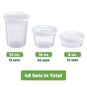 Quando se trata de contar calorias, seguir um plano de treino ou dieta, ou apenas armazenar sobras após o jantar, é sempre mais fácil quando você tem os recipientes certos de delicatessen. É por isso que criamos um pacote confortável de recipientes de armazenamento de alimentos de 227 g, 473 ml e 947 ml, um conjunto de organizadores de alimentos redondos que são perfeitos para manter todos os seus alimentos favoritos frescos, deliciosos e prontos para serem apreciados quando você estiver em casa, no trabalho ou em qualquer lugar! - Solução versátil de preparação de refeições: este pacote combo de 48 inclui recipientes com tampas de 227 g, 473 ml e 946 ml, oferecendo os tamanhos perfeitos para porções de lanches, preparar refeições e armazenar sobras para qualquer ocasião. - Estrutura durável e confiável: feitos de plástico de alta qualidade sem BPA, esses recipientes de delicatessen com tampas são projetados para manter os alimentos frescos e suportar o uso diário, ideais para cozinhas domésticas e serviços de alimentação profissional. - Design empilhável que economiza espaço: os recipientes apresentam um design compacto e empilhável, permitindo armazenamento conveniente em armários, geladeiras e freezers, maximizando o espaço da cozinha e mantendo tudo organizado. - Herméticos e resistentes a vazamentos: com tampas de encaixe com uma vedação segura, esses recipientes são perfeitos para sopas, molhos e pratos à base de líquidos, evitando derramamentos bagunçados durante o transporte ou armazenamento. - Reutilizáveis, seguros para freezer e micro-ondas: projetados para uso repetido, esses recipientes versáteis fazem a transição com segurança do armazenamento do freezer para o reaquecimento do micro-ondas, tornando a preparação de refeições e as sobras sem complicações e eficientes.