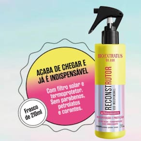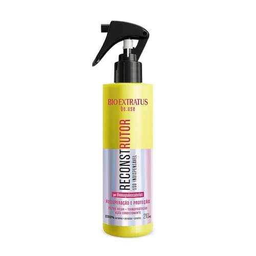 Reconstrução: após lavar os cabelos com shampoo, borrife o Reconstrutor em toda a extensão dos fios, massageando suavemente. Deixe agir 2 minutos e enxágue. Pode usar antes ou depois da máscara. Cabelos oleosos podem dispensar o uso da máscara.