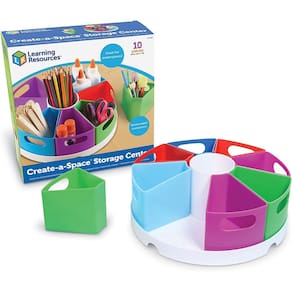 Learning Resources Create a Space Storage Center – Conjunto de 10 peças de arte/organizador de mesa para crianças, organizador de giz de cera/escola em casa e armazenamento - Armazenamento na mesa: o centro de armazenamento tudo em um possui todo o espaço que você precisa para manter sua sala de aula, sala de jogos ou escritório livre de bagunça - Economia de espaço multifuncional: o centro de armazenamento estilo carrossel vem com oito recipientes removíveis com tamanho para bastões de cola, lápis de cor e muito mais - Pegue e vá: cada recipiente removível vem com uma alça fácil de segurar; para que você sempre possa pegar os materiais de que precisa - Promove limpeza e organização: cada recipiente mede 11,4 cm de largura x 10 cm de altura; durável e de alta qualidade; os recipientes ficam dentro de uma bandeja circular resistente completa com espaço de armazenamento central; a bandeja mede 30 cm de diâmetro - Dê o presente de aprendizagem: se você está comprando brinquedos de aniversário de Natal da Learning Resources; ajuda você a descobrir novos aprendizados, presente ideal para meias de Halloween, Natal, cestas de Páscoa ou até mesmo para ensino em casa