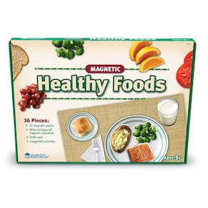 Learning Resources Alimentos Magnéticos Saudáveis, Alimentos Magnéticos, 34 Peças, Idades 3+ - ALIMENTO MAGNÉTICO: Alimentos realisticamente ilustrados representam 5 grupos principais de alimentos - Ensine hábitos alimentares saudáveis: apresente às crianças o planejamento de refeições saudáveis e às maneiras à mesa - 34 peças magnéticas: conjunto de 34 peças magnéticas, jogo americano magnético para escrever e limpar, bloco de menu e guia de atividades - Brinque comida para crianças: a partir de 3 anos