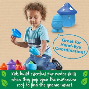 Recursos de aprendizagem Peekaboo Gnome Homes — Brinquedos educativos pré-escolares ecológicos, brinquedos Montessori para crianças de 18 meses ou mais — Uma surpresa do tamanho de um gnomo: em cinco cores e tamanhos, essas casas numeradas de gnomos ensinam as crianças a contar, comparar cores e tamanhos! - Diversão motora fina: as crianças desenvolvem habilidades motoras finas essenciais quando abrem o teto de cogumelos para encontrar o gnomo lá dentro! - Uma maneira inteligente de se tornar ecológico: cada peça do Peekaboo Gnome Homes é uma forma de aprender, brincar e crescer! - Descubra Garden Magic: The Peekaboo Gnome Homes também inclui um guia de atividades repleto de fatos sobre gnomos para crianças que ajudam as crianças a descobrir a magia e as maravilhas de seus próprios quintais! - Dê o presente de aprender: se você está comprando para feriados, aniversários ou apenas porque, os brinquedos educativos premiados da Learning Resources ajudam você a descobrir uma nova diversão de aprendizado sempre que dá um presente!