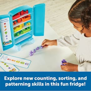 Recursos didáticos Classificando lanches, minigeladeira, 51 peças, maiores de 3 anos, brinquedos para crianças pequenas, brinquedos educativos, brinquedos para lanches, brinquedos de plástico, acessórios de cozinha para crianças — minigeladeira, grandes habilidades: as crianças dominam a contagem, a classificação e a padronização enquanto exploram os 30 minilanches coloridos e 15 cartões de atividades em frente e verso deste brinquedo didático! - Fine Motor Fun: dimensionado para mãos pequenas, este balcão de lanches para brinquedos educativos e educacionais ajuda as crianças a desenvolver coordenação, precisão e outras habilidades motoras finas! - Limpeza fácil: quando todos os lanches do dia estiverem prontos, as peças deste brinquedo infantil serão guardadas na minigeladeira até a próxima vez! - Idades e habilidades: especialmente projetado pensando nos pequenos, este conjunto de brinquedos educativos ajuda crianças de até 3 anos a desenvolver habilidades básicas de matemática e classificação desde o início! - Dê o presente de aprender: se você está comprando para feriados, aniversários ou apenas porque, os brinquedos educativos premiados da Learning Resources ajudam você a descobrir uma nova diversão de aprendizagem toda vez que você dá um presente!