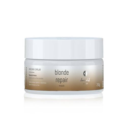 Red iron blonde repair máscara 250g Blonde repair mask É uma máscara que repara intensamente de dentro para fora o fio fragilizado por agressões diárias, descoloração e mechas, ajudando a desembaraçar, preenchendo os espaços danificados e auxiliando na reposição das moléculas de proteínas. Tem ph 4,0-4,5. Como usar: Para tratamento intensivo, após lavar o cabelo com o blond repair shampoo, retire o excesso de água e aplique a blond repair mask. Pause por 5 a 10 minutos. Enxágue cuidadosamente. Contém: 01 - red iron blond repair mask 250g