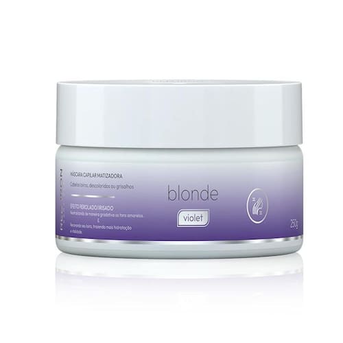 Blonde Violet Mask 250g desenvolvida especialmente para cabelos loiros, descoloridos e com mechas ou luzes nas alturas de tom 9 - 10 ou grisalhos. Promove efeito de matização, eliminando o tom amarelado indesejado, para loiros beges a perolado.