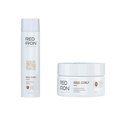 Red Iron Soul Curly Shampoo + Mascara Cachos A linha Soul Curly é rica em ativos de nutrição, hidratação, fortalecimento e reparação. Suas formulações são mais suaves, livres de parabenos, Diminuindo a possibilidade de desenvolver irritações e sensibilizações. Silicones e óleos minerais foram eliminados da formulação para dar lugar a Ativos naturais, a linha não possui corantes e tão pouco sal Cloreto de Sódio - NaCl , contemplando uma fórmula eficaz para garantir cachos saudáveis.