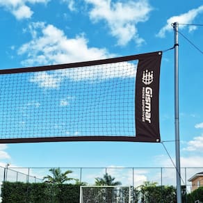 A malha da rede possui medidas de 5x5cm, permitindo que a bola de Beach Tennis passe facilmente através dela, sem ficar presa. A cor preta da borda dá um toque de elegância e sofisticação à sua quadra.