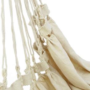 Feita de forma artesanal, a rede de cadeira é feita com 100% algodão tornando o material forte, firme, confortável e prático para higienização. E para aqueles que não querem furar teto, ou fixar ganchos, a rede cadeira proporciona uma vantagem de prendê-La com cordas.
