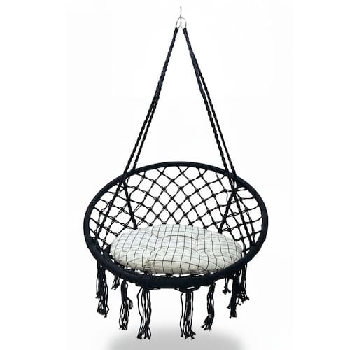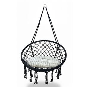 E para aqueles que não querem furar teto ou pregar um gancho, a rede cadeira proporciona a vantagem de prendê-la com cordas. Deixe o ambiente a cada momento do dia mais vivo e moderno; as sombras que se formam nas paredes com a cadeira suspensa, do amanhecer ao entardecer, são fantásticas.