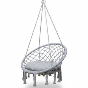E para aqueles que não querem furar teto ou pregar um gancho, a rede cadeira proporciona a vantagem de prendê-la com cordas. Deixe o ambiente a cada momento do dia mais vivo e moderno; as sombras que se formam nas paredes com a cadeira suspensa, do amanhecer ao entardecer, são fantásticas.