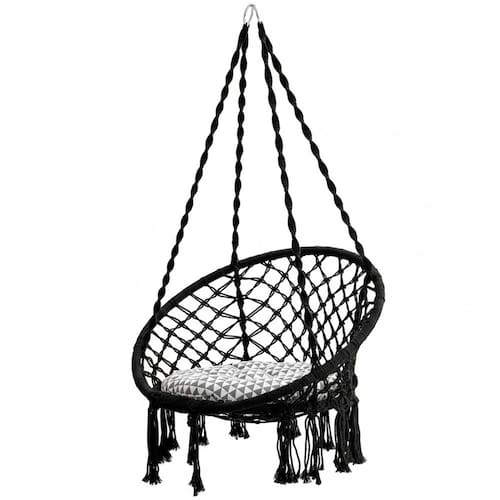 E para aqueles que não querem furar teto ou pregar um gancho, a rede cadeira proporciona a vantagem de prendê-la com cordas. Deixe o ambiente a cada momento do dia mais vivo e moderno; as sombras que se formam nas paredes com a cadeira suspensa, do amanhecer ao entardecer, são fantásticas.