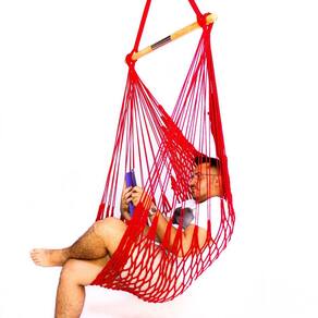 Conheça nosso modelo de Rede Suspensa ou Rede Cadeira Trançada. Esse modelo de rede cadeira é feita em cordão 100% algodão, altamente reforçado. Seu trançado parece uma rede tarrafa, não contém nós, dando mais conforto ao usuário.
