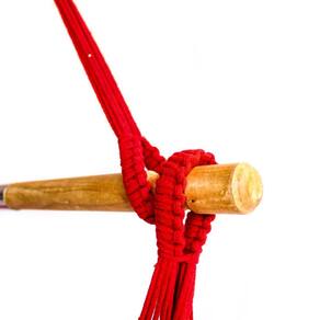 Dimensões: 1,00 m x , 1,00 m Encosto: 1,00 m x 0,60 m Assento: 1,00 m x 0,40 m Medida Madeira: 0,90 m Medida das Cordas : 0,60 m Peso: +/- 2.400 kg incluindo a madeira Capacidade Máxima de Carga: 120 kg Composição dos fios: 100% Algodão Distancia ideal entre o gancho e o piso : aprox. 2,20